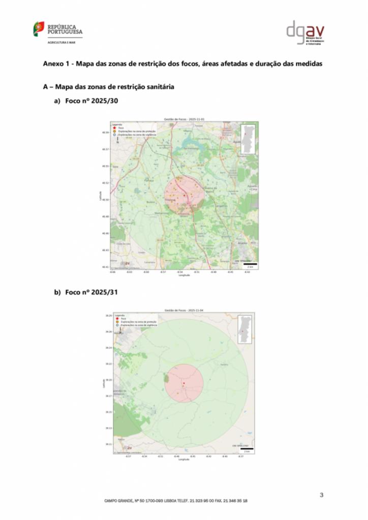 As medidas de restrição aplicáveis às zonas de vigilância vigoram até 12/12/2025, nos termos do Edital nº 35 GAAP / DGAV