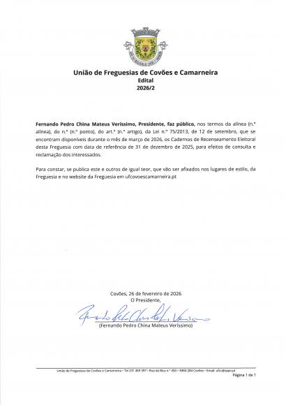19-MAR-2026A Junta da União das Freguesias de Covões e Camarneira informa que se encontra em vigor a Campanha de Apoio à Esterilização de Animais de Companhia promovida pelo Município de Cantanhede, com o objetivo de incentivar a detenção responsável e o controlo da população animal.A esterilização constitui uma medida essencial na prevenção de ninhadas indesejadas, contribuindo para a redução do abandono animal e para a promoção do bem-estar dos animais de companhia. Acrescem ainda benefícios ao nível da saúde, nomeadamente na prevenção de determinadas patologias, bem como na melhoria de alguns comportamentos.Podem candidatar-se a este apoio os munícipes residentes no concelho de Cantanhede, sendo elegíveis até dois animais de companhia (cães e/ou gatos) por agregado familiar. Os animais deverão estar devidamente identificados com microchip e com registo atualizado no SIAC. No caso dos cães, é obrigatória a vacinação antirrábica válida e licença atualizada emitida pela respetiva Junta de Freguesia, salvo situações legalmente previstas.A campanha abrange esterilizações realizadas entre 15 de março e 31 de agosto de 2026, ou até esgotamento da verba disponível. O pedido de comparticipação deverá ser submetido até 14 de setembro de 2026, sendo obrigatório o envio do processo completo no prazo máximo de 10 dias úteis após a realização da cirurgia.Os valores de comparticipação variam consoante a espécie e o sexo do animal, estando previstos apoios majorados para agregados familiares com carências socioeconómicas devidamente comprovadas.As esterilizações deverão ser realizadas em Centros de Atendimento Médico-Veterinário autorizados do concelho.Para mais informações, consulta:Normas da Campanha: https://www.cm-cantanhede.pt/mcsite/documento/23177/normas-da-campanha-de-apoio-a-esterilizacao-de-animais-de-companhia-do-municipio-de-cantanhede-2025Requerimento: https://www.cm-cantanhede.pt/mcsite/documento/22928/requerimento-campanha-esterilizacao-ac